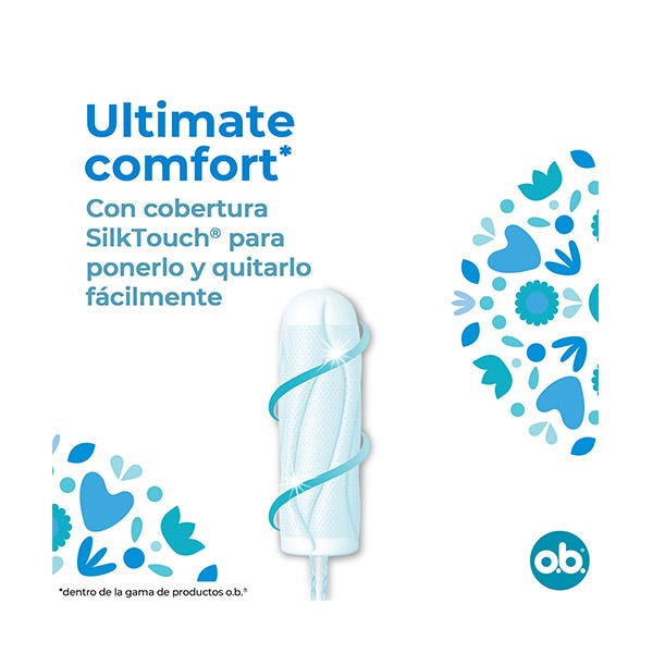 El único tampón con cubierta SilkTouch que permite que el tampón se deslice para una inserción y extracción más suaves y fáciles, para máxima comodidad y protección.