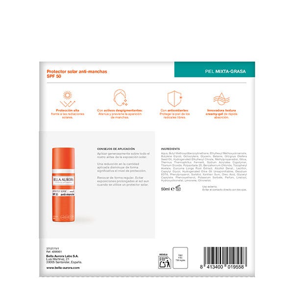 Protector solar animanchas SPF50 para piel mixta-grasa
