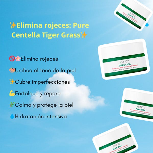 Sinoz Pure Cica Tiger Grass Color Correcting Treatment con Centella Asíatica – Corrige Rojeces e Imperfecciones al Instante