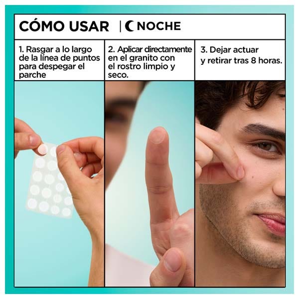 Este PARCHE HIDROCOLOIDDE ultrapoderoso de 420 micrones de GROSOR** crea una barrera protectora sobre el granito para absorber la suciedad y reducir visiblemente los granitos maduros de manera rapida, en 8 horas. Eficacia comprobada para reducir el exceso de impurezas y las rojeces visibles.