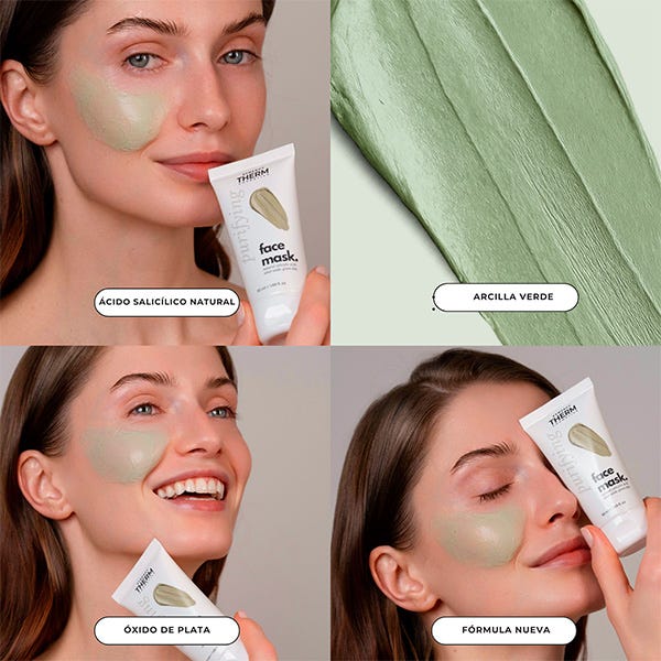 Descubre una piel visiblemente más limpia y suave con la Mascarilla Facial Purificante, ahora con una fórmula mejorada. Enriquecida con Ácido Salicílico Natural, Óxido de Plata y Arcilla Verde, purifica los poros en profundidad, equilibra el exceso de sebo y favorece la regeneración natural de la piel para un cutis uniforme y saludable.
