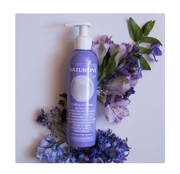 CC Cream matizadora violeta sin aclarado que elimina los tonos amarillentos y cobrizos no deseados en cabellos rubios, blancos y decolorados.