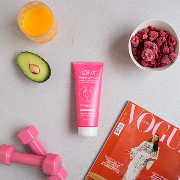 Elifexir Dermo Push Up-10 es una crema reafirmante para el cuerpo en formato gel con efecto escultor multiactivo y de rápida absorción que ayuda a elevar, definir y reafirmar tus glúteos.