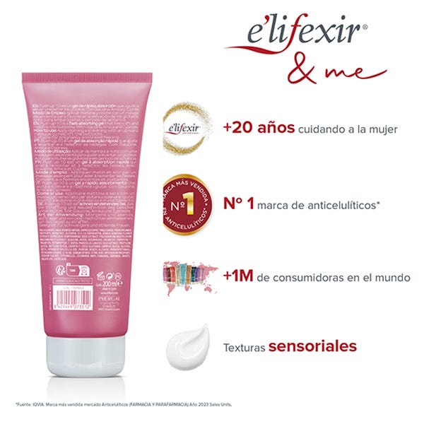 Cuida tu cuerpo, destaca tu belleza. Elifexir, marca más vendida mercado de anticelulíticos (Farmacia y Parafarmacia) en el año 2022 Sales Units. Fuente: IQVIA.