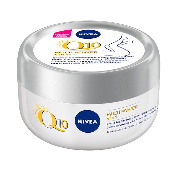 NIVEA Q10 MULTI POWER 4in1 Crema Reafirmante + Remodeladora: reafirma las zonas más difíciles como son el vientre o abdomen, los muslos y los glúteos en tan solo en 2 semanas, ayudando a devolver la firmeza a la piel. La fórmula de este crema reafirmante, enriquecida con Coenzima Q10 y Extracto de Soja, estimula la producción de energía en las células de la piel, mejorando visiblemente la silueta. Además su fórmula de rápida absorción hidrata intensivamente la piel por más de 24 horas, proporcionando una sensación de piel suave y sedosa y mejorando su elasticidad. Consigue una piel visiblemente más tersa y elástica en las zonas más difíciles de tu cuerpo esta crema reafirmante. Compatibilidad con la piel dermatológicamente comprobada.