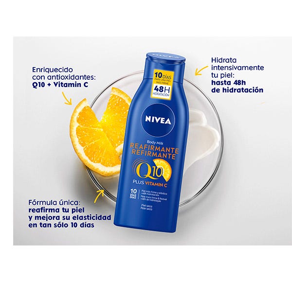 Nutre intensamente tu piel con NIVEA Q10 Body Milk Reafirmante.