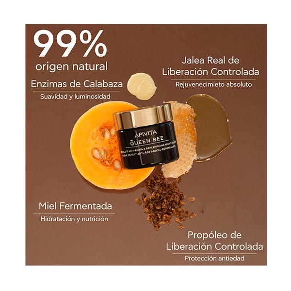 Redensifica, hidrata y nutre con Miel de APIVITA fermentada, escualano, aceite de oliva, cera de abeja y pantenol.