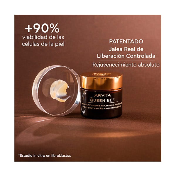 Esta nutritiva crema de noche está formulada con una doble tecnología patentada de liberación controlada que ofrece a la piel una difusión de jalea real y propóleo altamente concentrada, continuada y de larga duración: