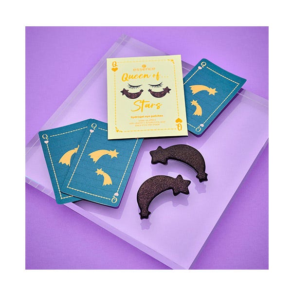 Los parches para ojos Essence Queen of... de hidrogel son la opción perfecta para una mirada fresca y resplandeciente. Cada paquete incluye cinco pares de parches para ojos con un diseño y colores únicos, en forma de unicornios, estrellas, mariposas, corazones y delfines. Una mascarilla impresiona especialmente con su shimmer iridiscente, pero todas tienen una cosa en común: tonos brillantes y acabado glitter. Están formulados con vitamina C y ácido hialurónico para hidratar e iluminar la delicada zona del contorno de los ojos. Estos parches para ojos proporcionan un efecto revitalizante, de mirada despierta, dejando la piel con un aspecto fresco, lleno de energía. Tanto si estás combatiendo los signos de fatiga como si solo quieres un cuidado extra al instante, estos parches son la solución perfecta para el cuidado de la piel.