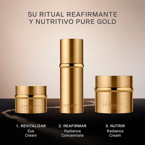 • La crema Pure Gold Radiance Eye Cream de La Prairie mejora instantáneamente la luminosidad de la piel y la revitaliza, proporcionando un efecto iluminador que solo el oro puede dar