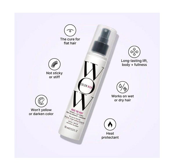 El Spray Raise the Root está formulado con polímeros translúcidos, flexibles y únicos que actúan como un resorte en la raíz del cabello, creando elevación instantánea y volumen duradero.
