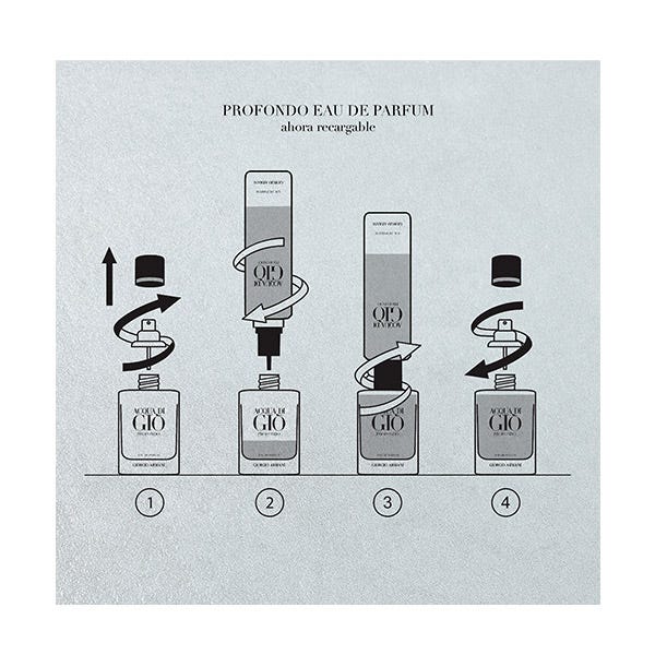 *Solo recargable los formatos Acqua di Giò Profondo Eau de Parfum 50 y 100 ml