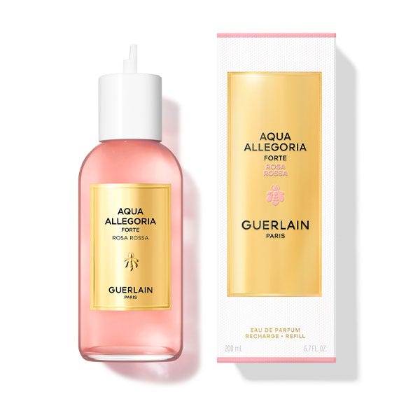 Gracias al formato recarga de Rosa Rossa Forte, recargar tu precioso frasco Aqua Allegoria es un gesto muy sencillo. Una majestuosa eclosión de delicadas rosas bañadas por el sol que se funden con un melocotón blanco jugoso sobre un fondo deliciosamente amaderado.