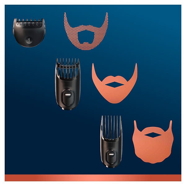 3 peines para todos los estilos de barba: barba de tres días (1 mm), corta (3-11 mm) y larga (13-21 mm)