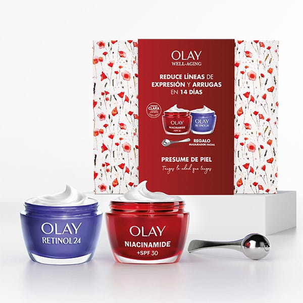 ¿Quieres transformar tu piel, tengas la edad que tengas? Este Día de la Madre, regala (o regálate) una piel radiante con este PACK ESPECIAL DE OLAY CON MASAJEADOR FACIAL DE REGALO.