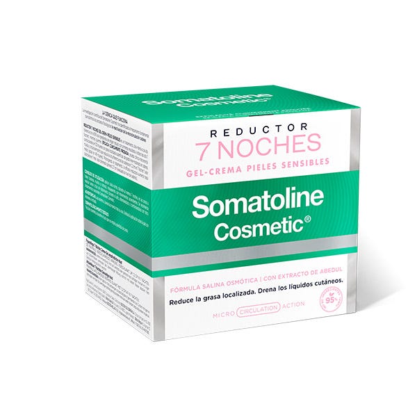 Reductor 7 Noches Natural, la máxima eficacia reductora de Somatoline Cosmetic en solo 7 noches, específicamente formulado para pieles sensibles es un tratamiento con textura en crema-gel, con el 95% de principios activos de origen natural.
