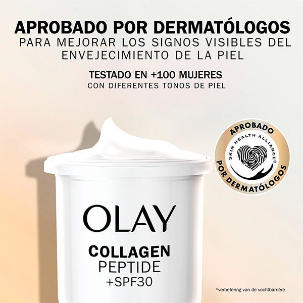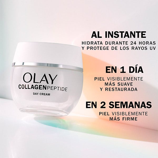 Saca la cápsula vacía e introduce el recambio de Olay Collagen Peptide SPF30 para seguir disfrutando de nuestra crema hidratante restauradora avanzada con SPF 30 para obtener resultados visibles en la piel. Nuestra fórmula fortalecedora para el cuidado de la piel está elaborada con péptidos de colágeno, que ayuda a mejorar el aspecto de las líneas de expresión y las arrugas, y Niacinamida al 99% pura, que penetra hasta 10 capas de profundidad para ayudar a activar la renovación celular de la superficie. Disfruta del poder de la hidratación 24 horas, manteniendo tu piel hidratada durante todo el día. En solo un día, la piel recupera su aspecto liso y terso. Experimenta una piel visiblemente más fuerte y firme en 14 días.