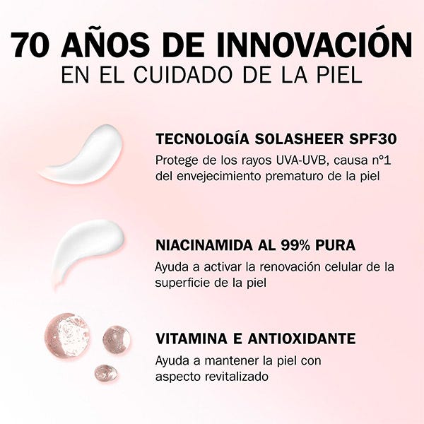 Experimenta un cutis más firme y líneas de expresión reducidas en 14 días. Di adiós a las cremas faciales pesadas y grasas y da la bienvenida a nuestra avanzada tecnología Olay SolaSheer SPF30: una eficaz protección UVA y UVB de amplio espectro, que protege tu piel de los rayos nocivos y se absorbe sin esfuerzo para proporcionar una sensación ligera, no grasa y no pegajosa sobre la piel. Nuestra fórmula ha sido aprobada dermatológicamente por la Skin Health Alliance por su eficacia para combatir los signos visibles del envejecimiento de la piel.