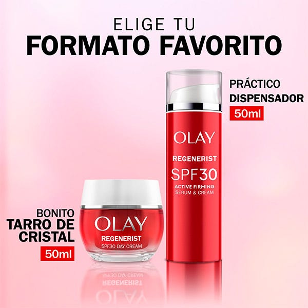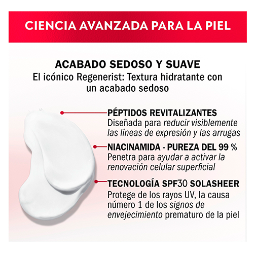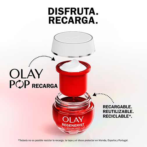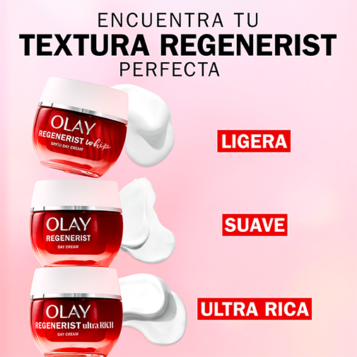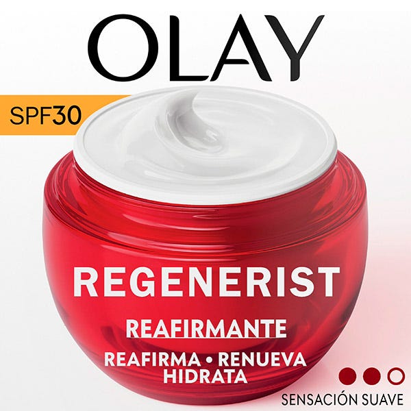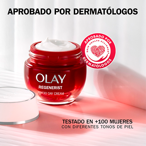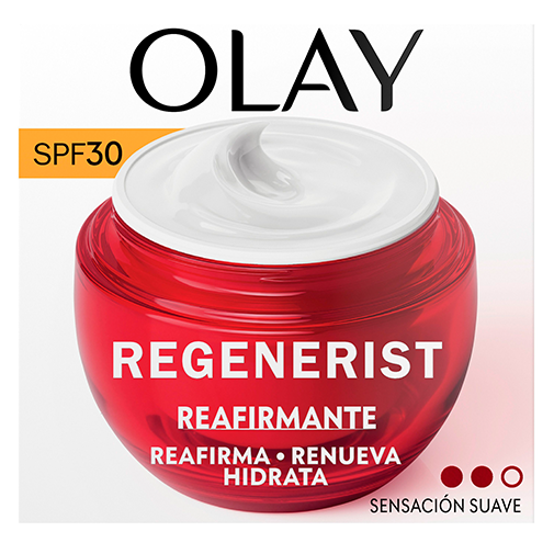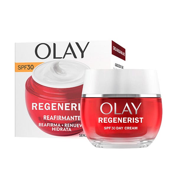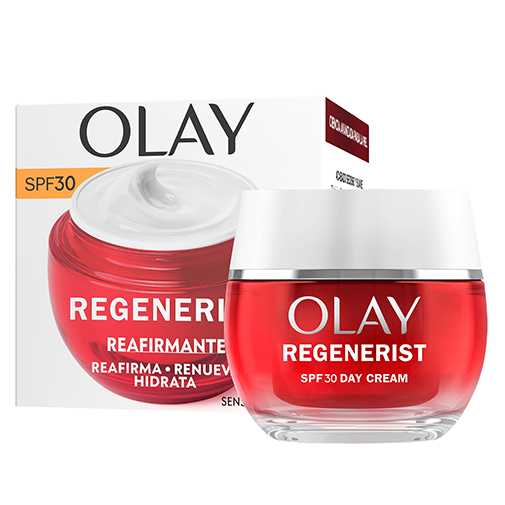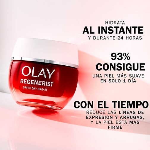 Protege la piel frente a los dañinos rayos UVA y UVB con la crema de día Olay Regenerist con SPF 30.