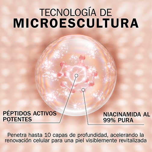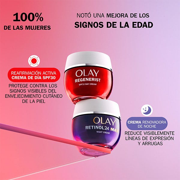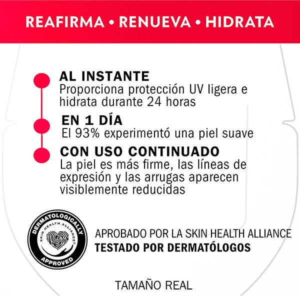 Su fórmula hidratante enriquecida con vitamina B3 (niacinamida) y péptidos de Olay penetra profundamente en la superficie de la piel y ayuda a optimizar su renovación celular.