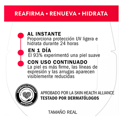 Hidrata profundamente durante 24 horas, renueva visiblemente y reafirma la piel.