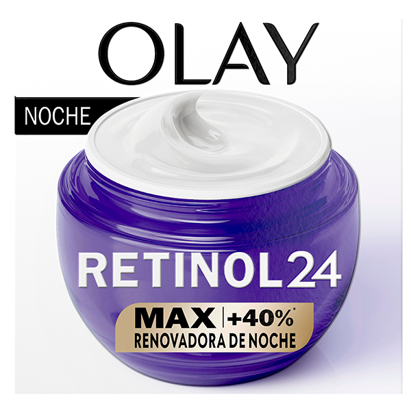 La hidratante facial de noche Olay Regenerist Retinol 24 MAX hidrata, suaviza y recupera la luminosidad de la piel.