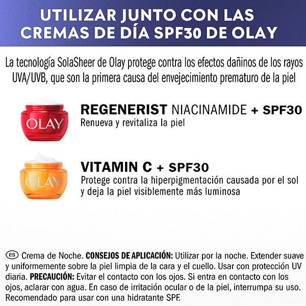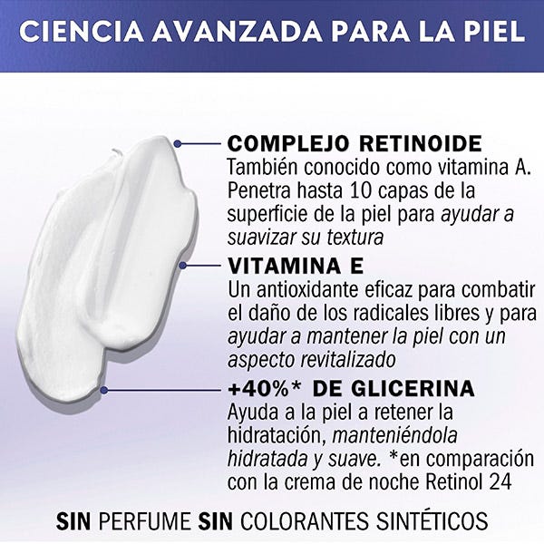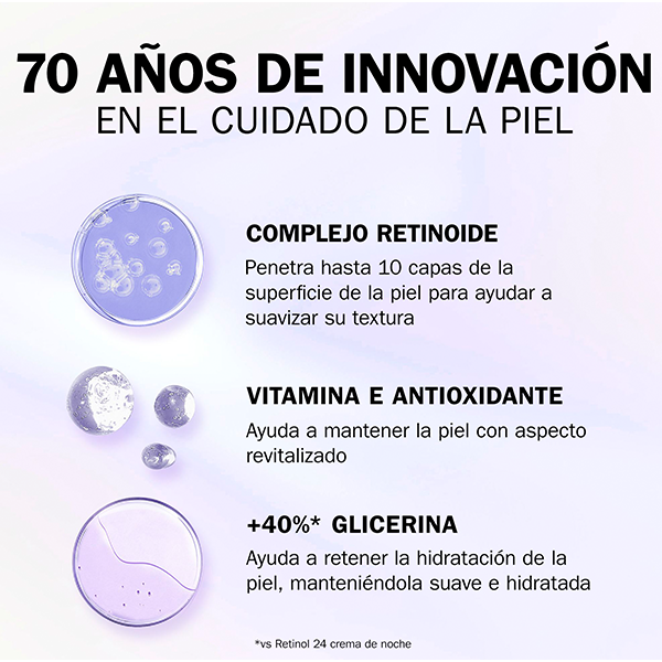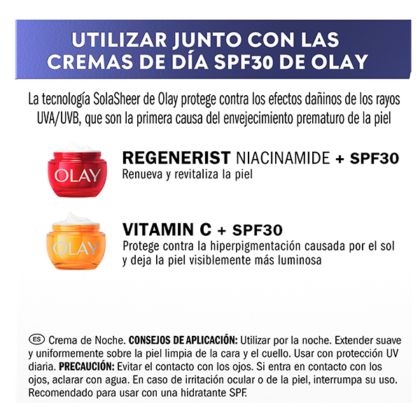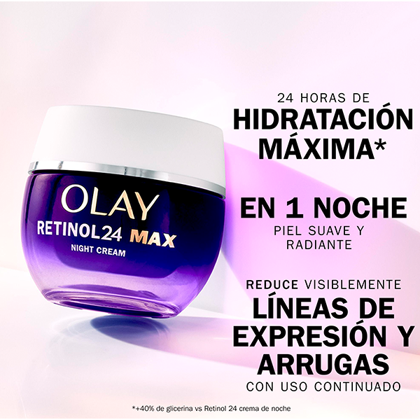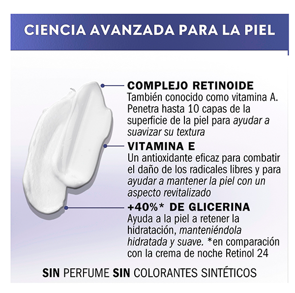 Esta crema sin perfume contiene la fórmula más potente de retinoide + vitamina B3 de Olay y un 40 % más de ingredientes hidratantes para dejar la piel aún más hidratada.