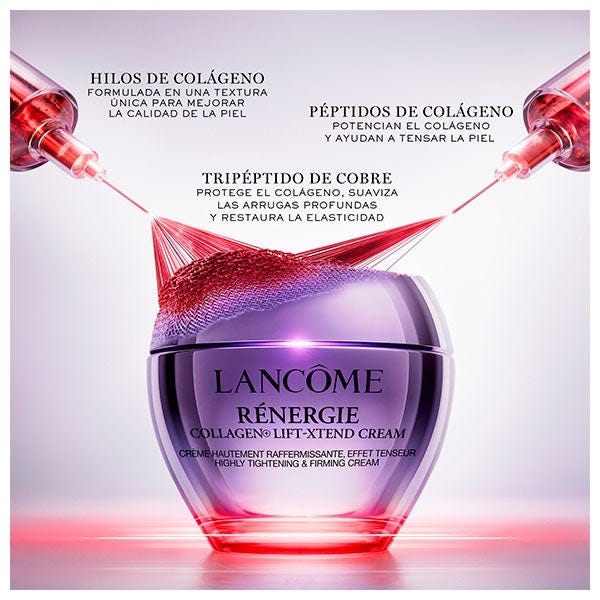 Descubre una nueva dimensión de la ciencia del colágeno con Lancôme Rénergie Collagen+ Lift-Xtend Cream, una avanzada crema facial antienvejecimiento inspirada en los procedimientos de lifting con hilos tensores.