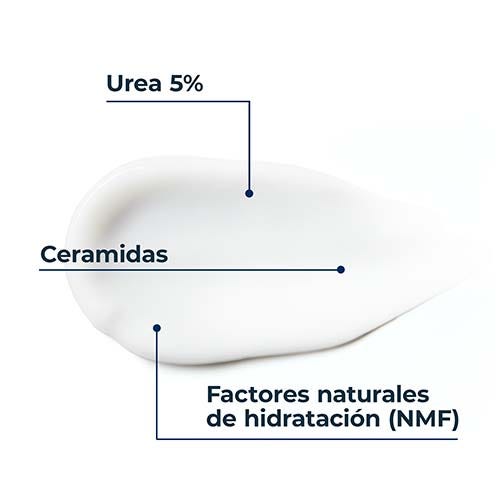 Aqua, Glicerina, Urea, Adipato de Dibutilo, Estearato de Glicerilo, Alcohol Estearílico, Dicaprilil Éter, Alcohol Cetearílico, Lactato de Sodio, Almidón de Tapioca, Estearato de Glicerilo SE, Ceramida NP, Ácido Láctico, Arginina HCL, PCA sódico, colesterol, aceite de semilla de Helianthus Annuus, alanina, carnitina, glicina, cloruro sódico, dimeticona, goma xantana, sulfato cetearílico sódico, glicol de decileno, fenoxietanol, glicol de pentileno.