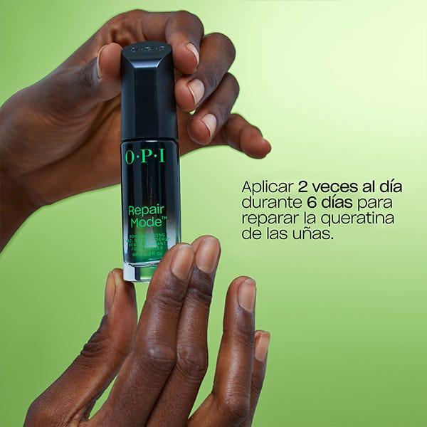 OPI Repair Mode, con tecnología patentada Ulti-Plex Technology™ repara la estructura de la queratina de la uña penetrando en la superficie para crear nuevos enlaces DENTRO de la uña natural. Quieres CTRL + ALT+ DEL daño en la uña? Repair Mode™. ¿Quieres prevenir los daños en las uñas causados por el lavado de manos o los productos de limpieza? ¡Ding ding ding! Repair Mode™. Este suero de uñas repara el 99% de la queratina de uñas. Las uñas se ven mejoradas tras la primera aplicación y, con el uso continuado, puedes esperar unas uñas más suaves y fuertes, resistentes a la rotura y un mejor aspecto de las irregularidades y el color.