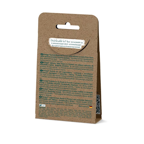 Kneipp bálsamo labial repair & prevent es un cuidado labial 100% natural con valiosos extractos de manzanilla y melisa para labios muy estresados.