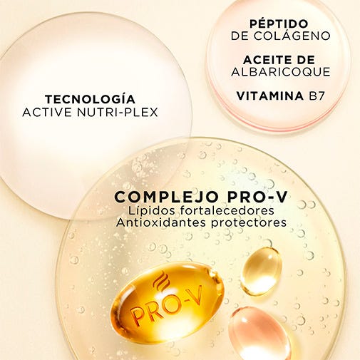 AHORA ENRIQUECIDO CON 3 NUTRIENTES: péptido de colágeno + aceite de albaricoque + vitamina B7.