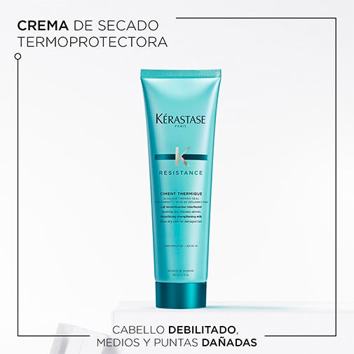 Résistance Ciment Thermique es un protector térmico que reconstruye y revitaliza el cabello dañado.