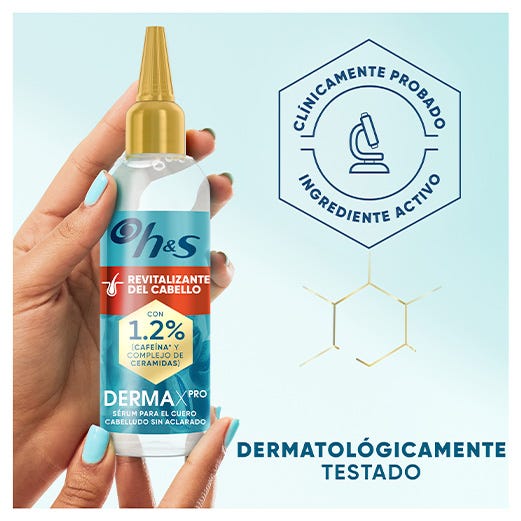 Utilízalo junto con el champú y acondicionador hidratante H&S DERMAXPRO para ayudar al crecimiento capilar y a reducir hasta un 95% la caída del cabello debida a la rotura.