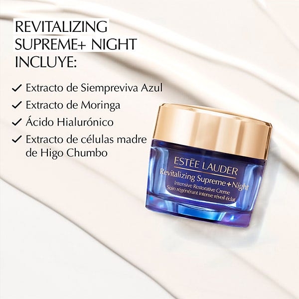 Una crema de noche rica y ultranutritiva con Ácido Hialurónico que revitaliza y deja la piel con una sensación de firmeza y un aspecto más luminoso.