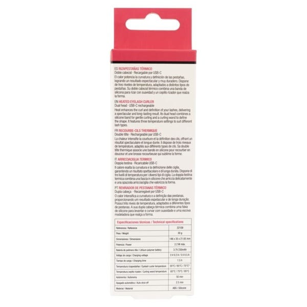 Contenido: Rizapestañas térmico / Cable de carga USB / Instrucciones.