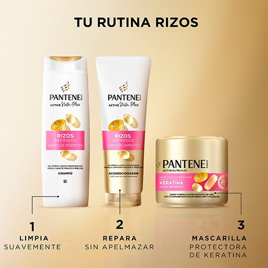 Aporta al cabello los nutrientes activos Pro-V para domar, definir y nutrir tu cabello rizado durante todo el día. La colección Rizos Definidos de Pantene: convierte las ondas rebeldes en rizos bien definidos, brillantes y llenos de vida, deja el cabello hidratado, suave y flexible, ayuda a mantener el cabello resistente a los daños del peinado.