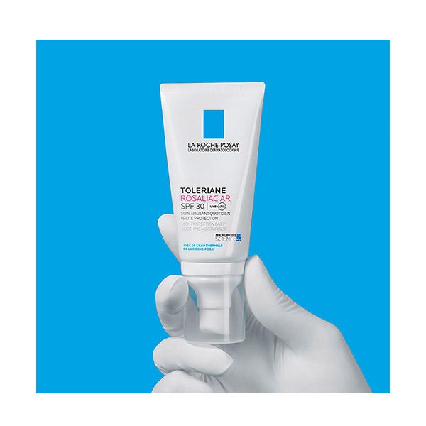 Aplicar Toleriane Rosaliac SPF30 todas las mañanas en todo el rostro.