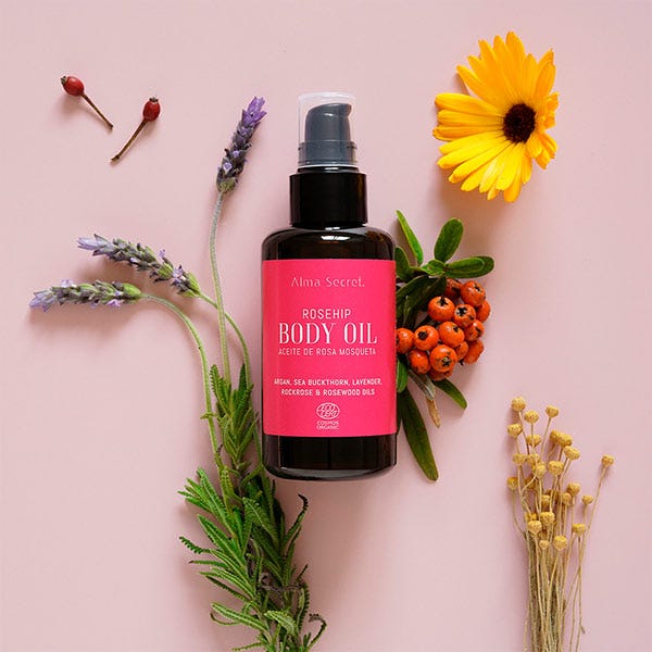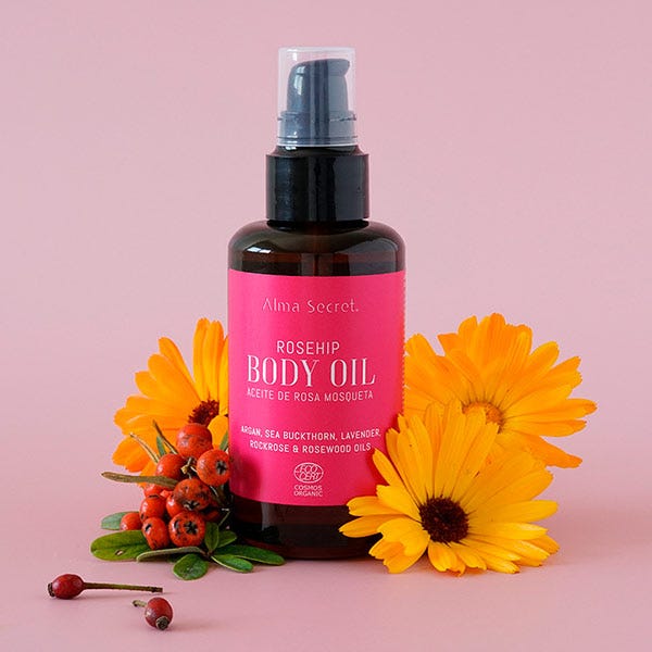 Con Aceites de Rosa Mosqueta, Argán y Caléndula ecológicos que calmarán la inflamación y potenciarán la regeneración celular.
