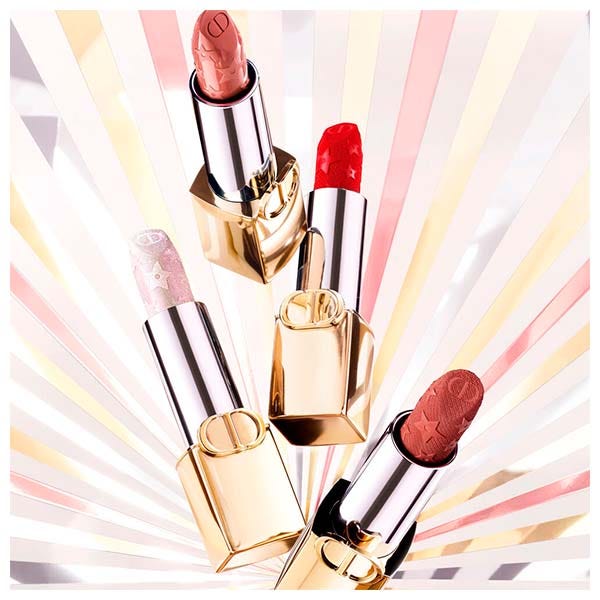 Para las fiestas de fin de año, Rouge Dior, la barra de labios icónica, luce un minucioso grabado de estrellas y un estuche totalmente dorado. Descubra 4 nuevos tonos en edición limitada: 010 Crystal en un nuevo acabado sparkle, 210 Circus con acabado satinado y 629 Parade y el atemporal 999, ambos con acabado aterciopelado.