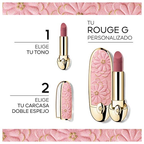 En tu primera compra de Rouge G, elige un color y una carcasa para crear tu propia barra de labios. En las siguientes, recarga el color o cambia de carcasa según desees.