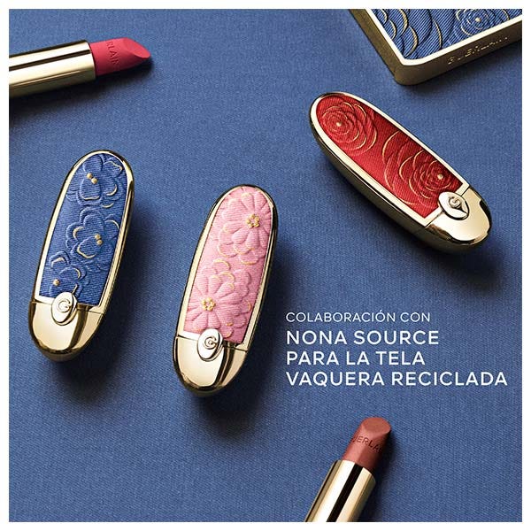 En el marco de la colección Blooming Denim, Guerlain se ha asociado con Nona Source, referente en el ámbito de la creación circular, para vestir la icónica barra de labios personalizable Rouge G.