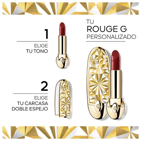 En tu primera compra de Rouge G, elige un color y una carcasa para crear tu propia barra de labios. En las siguientes, recarga el color o cambia de carcasa como desees.