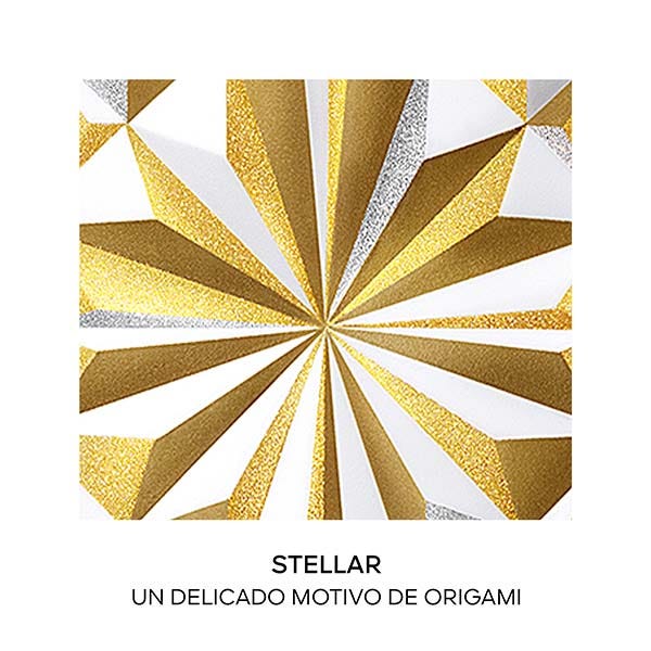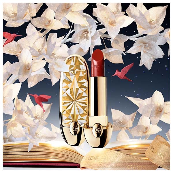 Esta Navidad, Rouge G presenta un motivo ""origami"" inédito en tonos dorados, plateados y blancos. Esta preciosa carcasa se hace eco del cuento navideño de papel de Guerlain, donde la magia cobra vida.