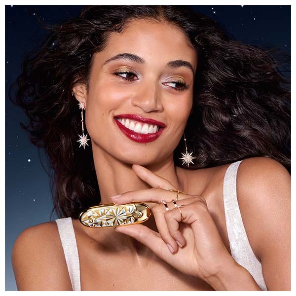 Este año, unas delicadas estrellas están grabadas en las barras con dos nuevos tonos satinados, que podrás descubrir en edición limitada: el Rouge Étoilé (877), un rojo púrpura profundo y el Nude Songe (306), un nude rosado.