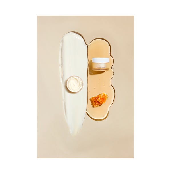 Crema formulada con extracto de propóleo y extracto de jalea real que proporciona una rica nutrición a la piel, mientras que el cóctel de vitaminas C, B3 (niacinamida) y B5 (pantenol) iluminan el tono apagado de la piel, dejándola revitalizada, radiante y flexible.