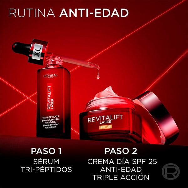Descubre el Set exclusivo de Navidad de L’Oreal Paris, una rutina Anti-edad con L’Oréal Paris. Incluye el Revitalift Laser sérum 30 ml y la crema Hidratante con SPF25 50 ml. Dos fórmulas avanzadas que actúan en sinergia para una piel más hidratada, firme, luminosa y protegida.