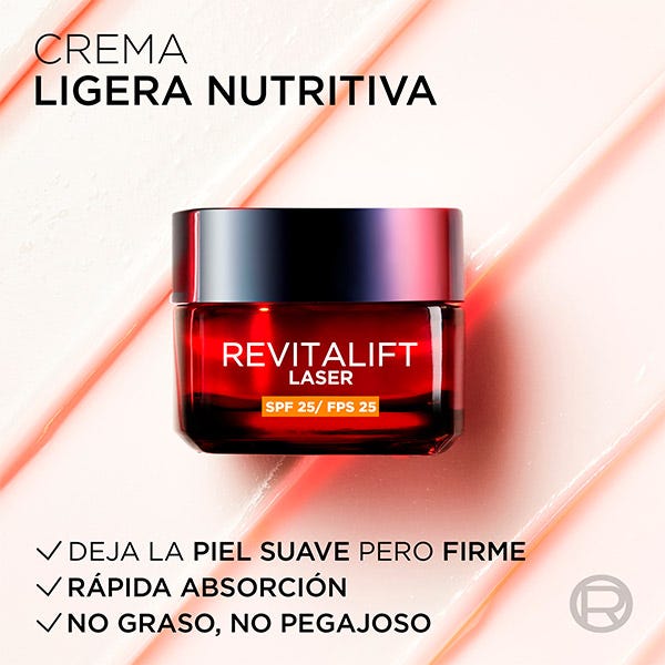 Se complementa con la Crema hidratante SPF25 de la gama Revitalift Laser, reforzada con una fórmula que mejora la potencia anti-edad gracias a sus tres activos dermatológicos, [Pro-Retinol + Ácido Hialurónico + Vitamina Cg]. Hidrata profundamente, estimula la renovación celular y protege eficazmente la piel contra los daños solares. Ideal para lograr una piel rejuvenecida, luminosa y protegida.