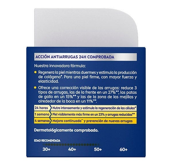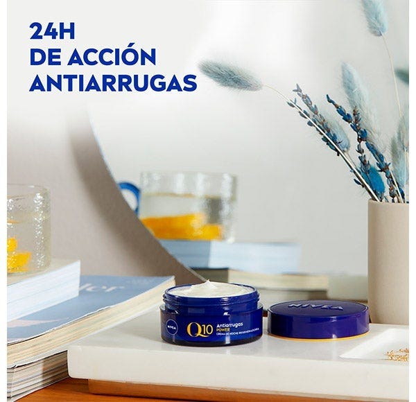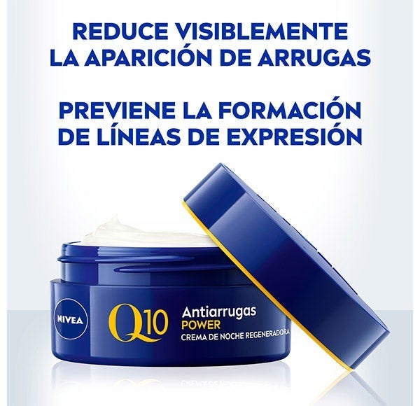 Q10 Antiarrugas POWER Crema de Noche: La Crema de Noche Regenadora hidrata la piel intensamente, regenera y reduce y previene las arrugas. Con doble booster de colágeno ayuda a reducir las arrugas en 7 días. Su fórmula contiene Q10 Puro para potenciar el colágeno de la piel y corregir las arrugas desde el interior, Creatina para reforzar la producción de colágeno y elastina y Ácido Hialurónico rellenar y alisar visiblemente las arrugas.