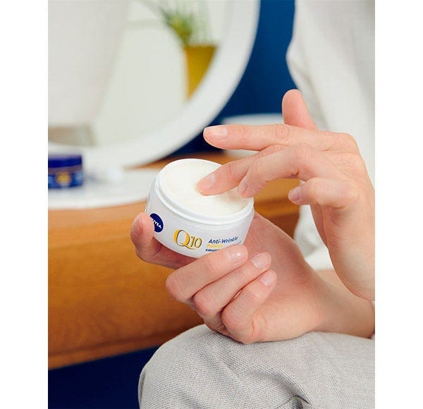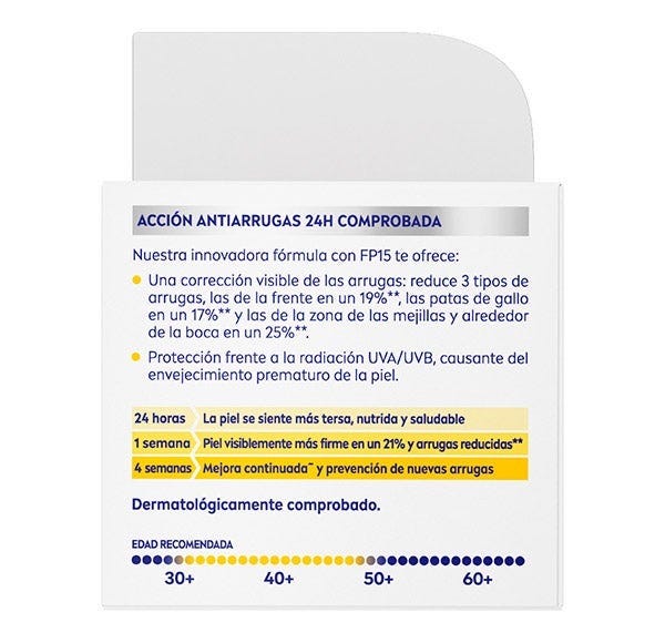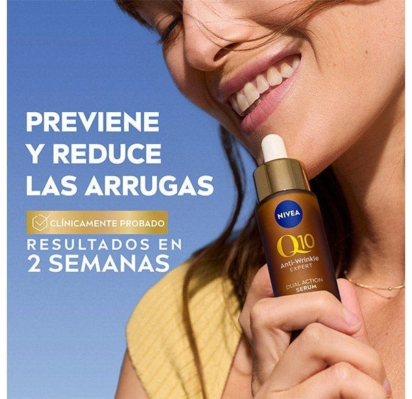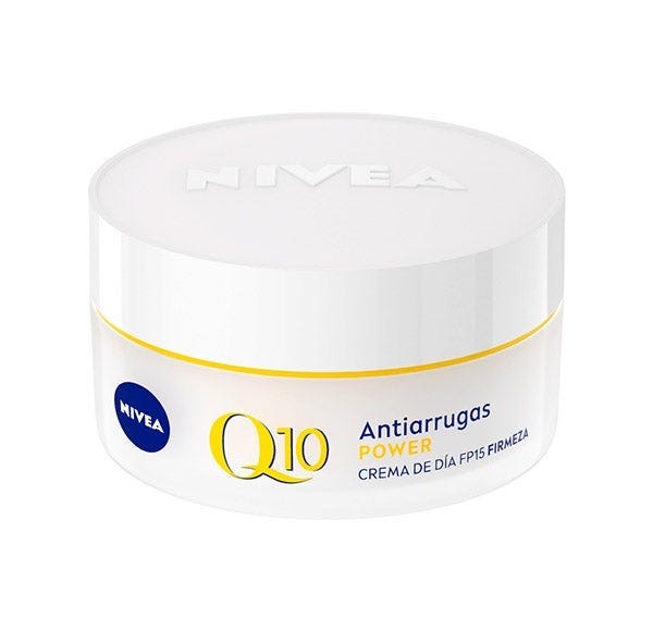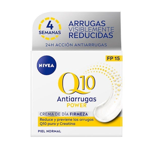 Q10 Antiarrugas POWER Crema de Día SPF15: NIVEA Q10 Antiarrugas POWER Crema de Día SPF15 reduce las arrugas en 7 días. Su fórmula, con dúo booster de colágeno, contiene Q10 Puro para potenciar el colágeno de la piel y corregir las arrugas desde el interior, Creatina para reforzar la producción de colágeno y elastina y Ácido Hialurónico rellenar y alisar visiblemente las arrugas.
